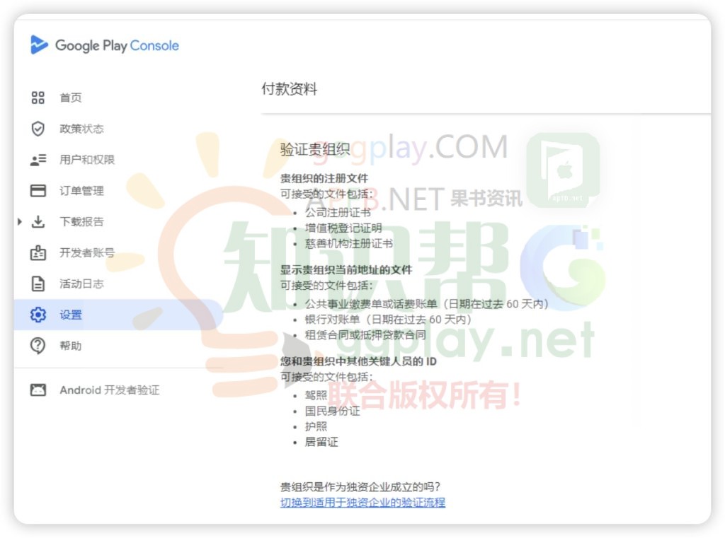 例如英国地区的Google Play商家验证,个人账号需要提供真实有效的身份证件+地址证明。