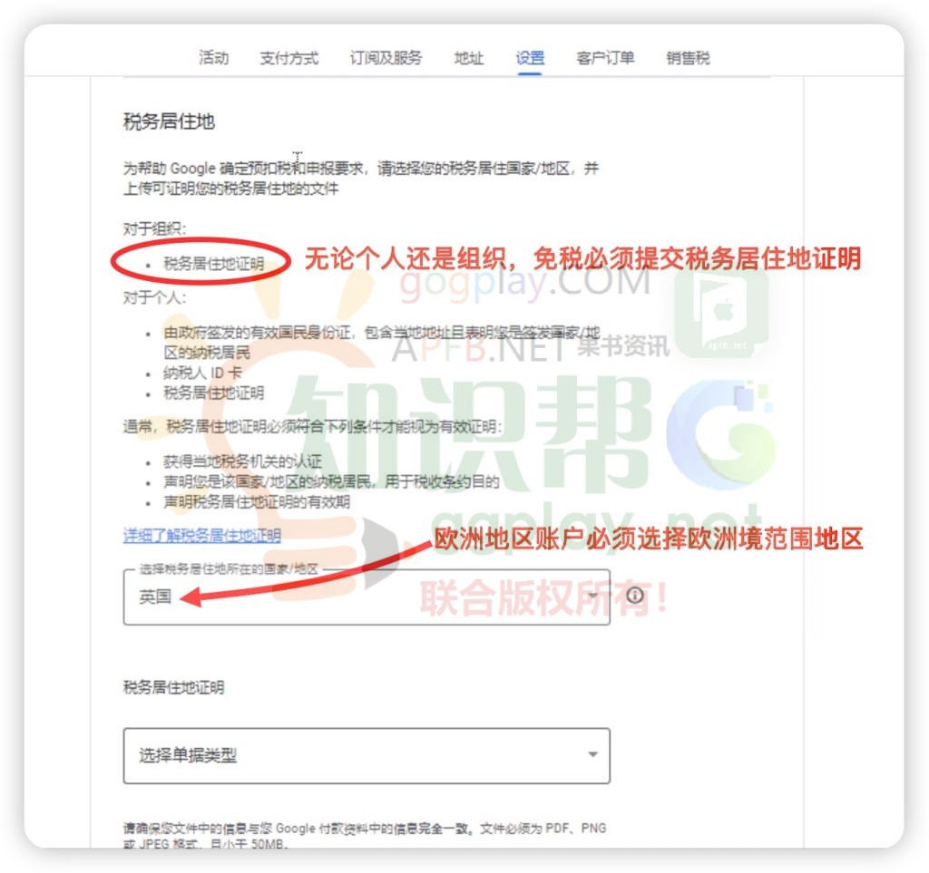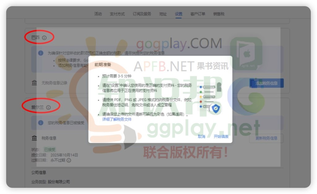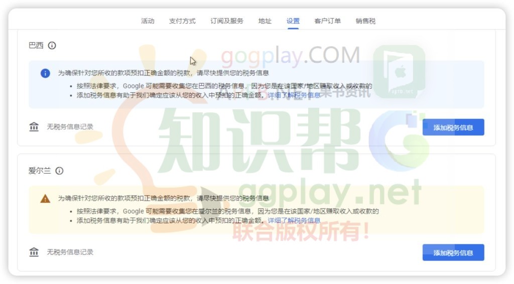 针对欧洲地区的账户,有一项刚性税务信息:爱尔兰税务,它与亚太地区的新加坡税务基本一致,所有欧洲地区的Google商业变现账户(如Google Play内购、AdSense、AdMob)都需要按规定申报爱尔兰税务信息。